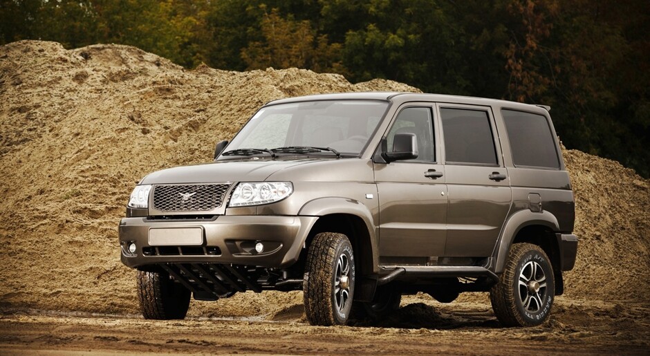 УАЗ подготовил Patriot и Hunter для трофиК покорению бездорожья стандартные ульяновские Patriot и Hunter готовы «на троечку». Чтобы отправиться «в пампасы», владельцы этих машин сначала, как минимум, меняют штатную резину на более «зубастую», ставят лебёдку, блокировки межколёсных дифференциалов